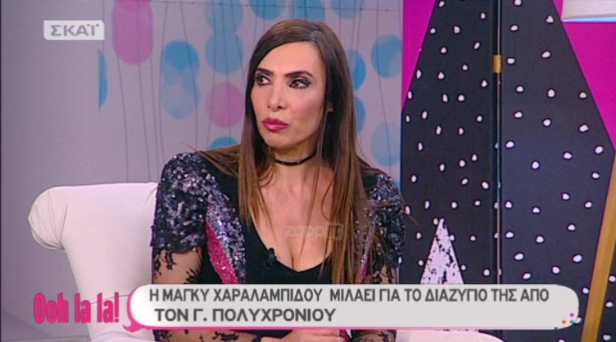 Καλεσμένη στο “Ooh la la” ήταν σήμερα η Μάγκυ Χαραλαμπίδου, η οποία μίλησε μεταξύ άλλων για τον χωρισμό της από τον Γιώργο Πολυχρονίου. «Έχω περάσει διάφορες φάσεις. Ειδικά τότε με το διαζύγιό μου με τον Γιώργο Πολυχρονίου είχα περάσει δύσκολα. Εμένα δεν μου άρεσε ποτέ να δημιουργώ σκάνδαλα… Νομίζω ότι ο κόσμος μπορεί να θεωρεί ότι μου αρέσουν τα σκάνδαλα. Δεν μου αρέσουν καθόλου. Όχι, δεν είχε ειπωθεί κάτι. Κάθε χωρισμός είναι δύσκολος. Είναι μια πάρα πολύ παλιά ιστορία και δεν υπάρχει λόγος να την ξεθάψω. Απλά κάθε χωρισμός μεγάλος, ειδικά όταν είναι γάμος, είναι δύσκολος. Οπότε, γενικά, θεωρώ ότι πρέπει να κρατήσεις τη θέση σου, ειδικά την εικόνα σου…», είπε η Μάγκυ Χαραλαμπίδου.