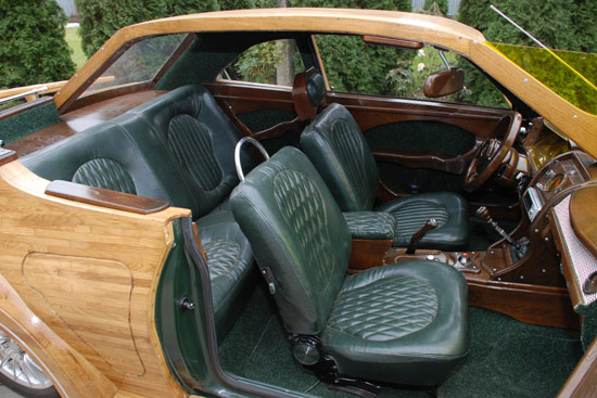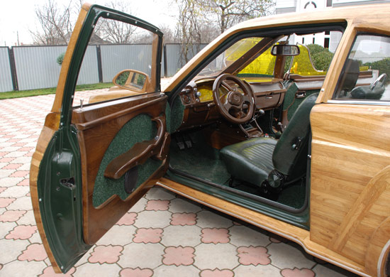 Όπως μπορείτε να δείτε έχει αφαιρέσει όλα τα εξωτερικά μεταλλικά μέρη και τα αντικετέστησε με ξύλινα πάνελ που χρησιμοποιούνται για το παρκέ του πατώματος. Το ίδιο το αυτοκίνητο τροποποιήθηκε αρκετά και τώρα μοιάζει με ένα ημι-κάμπριο. Από την μια μεριά είναι χωρίς στέγη, ενώ από την άλλη έχει μια σκληρή ξύλινη στέγη..