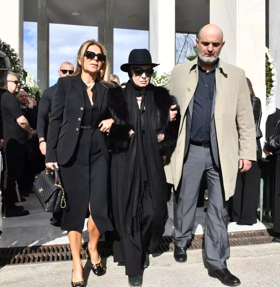 Η Ελένη Μαρούδα έφτασε στο νεκροταφείο ντυμένη στα μαύρα, εμφανώς καταβεβλημένη, μη μπορώντας να πιστέψει ότι έφυγε τόσο ξαφνικά ο σύζυγός της.
