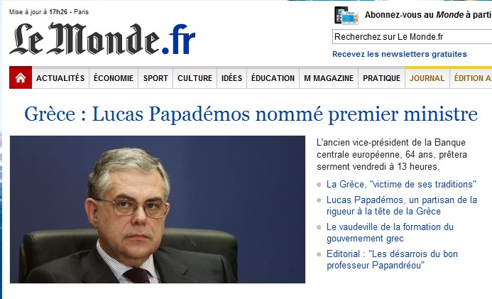 Το BBC αναφέρει χαρακτηριστικά “Επιτέλους η Ελλάδα έβγαλε πρωθυπουργό” και περιγράφει το προφίλ του Λουκά Παπαδήμου.