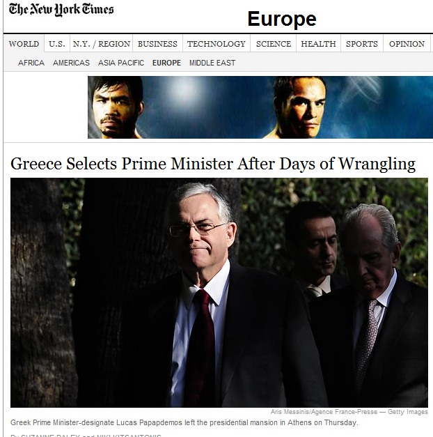 Όλα τα μέσα αναφέρονται στο θρίλερ της Ελλάδας τις τελευταίες ημέρες και πως τελικά κατέληξαμε και πάλι στο πρόσωπο που είχαν διελέξει από την αρχή. Μάλιστα, το BBC έχει άρθρο με το προφίλ του Λουκά Παπαδήμου, κάτι που έχουν κάνει και πολλά άλλα διεθνή μέσα.