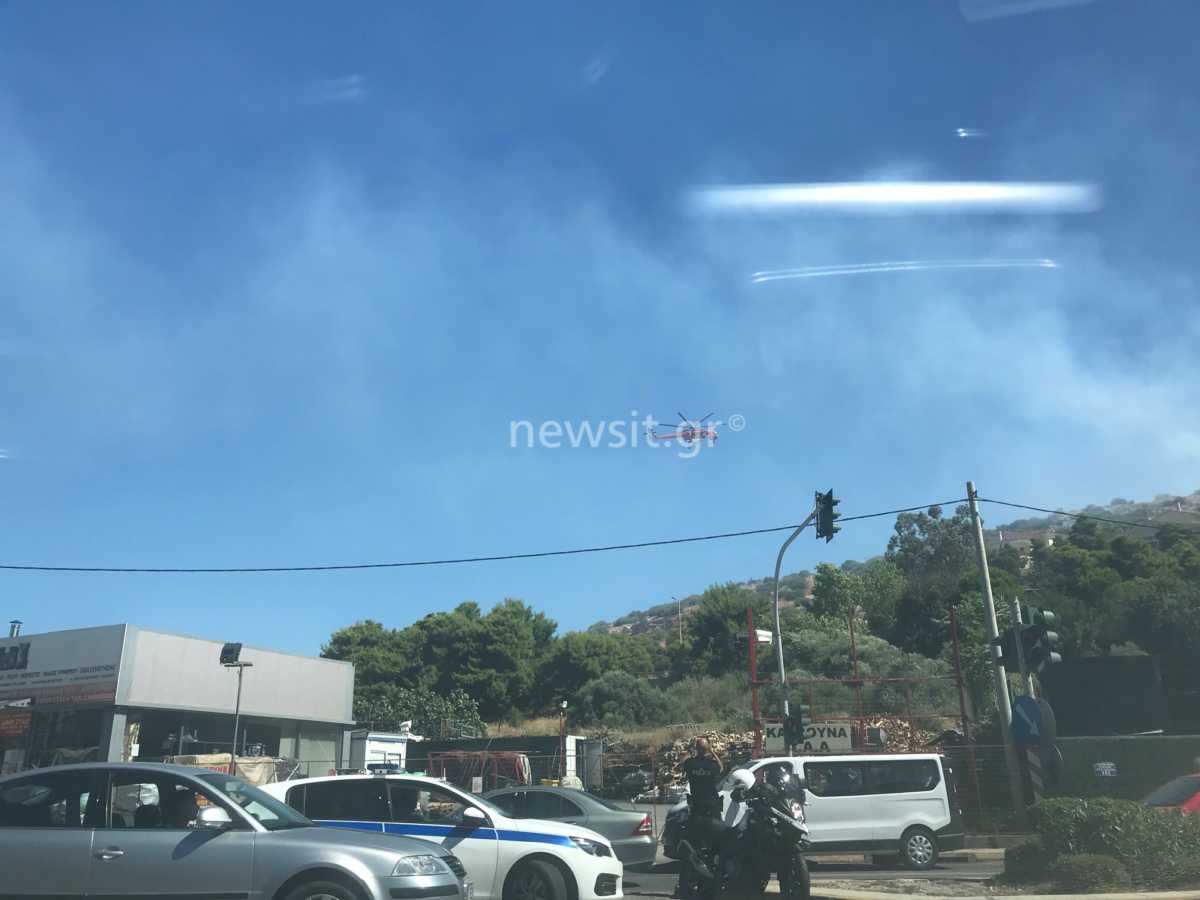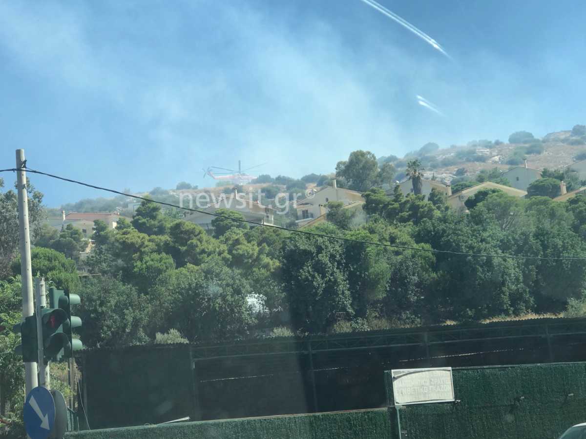 Δεν είναι γνωστό ακόμα πως ξέσπασε η φωτιά. Σύμφωνα με την Πυροσβεστική, η φωτιά καίει χαμηλή βλάστηση επί της οδού Οδυσσέα Ανδρούτσου.