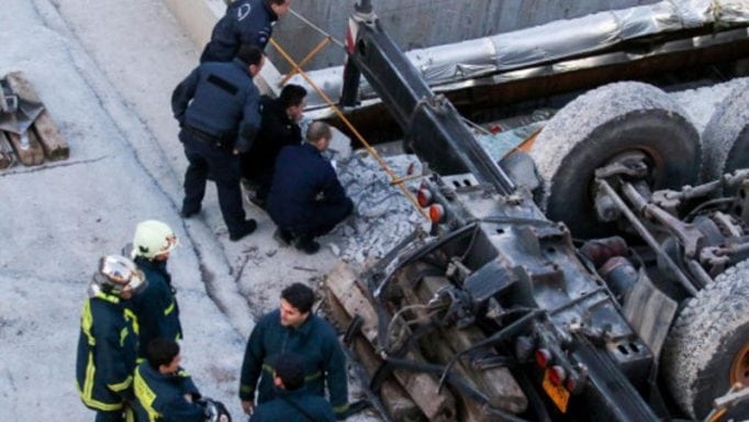 O 50χρονος χειριστής έμεινε για ώρα εγκλωβισμένος μέσα στο βαρύ όχημα.
