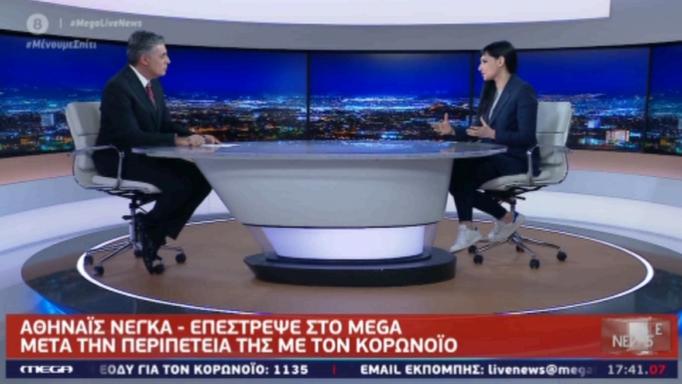Λίγο καιρό μετά την περιπέτειά της με τον κορωνοϊό, η Αθηναΐς Νέγκα βρέθηκε στο πλατό του Live News για να περιγράψει πώς βίωσε την ασθένεια. Η ίδια ανέφερε στον Νίκο Ευαγγελάτο τα εξής: