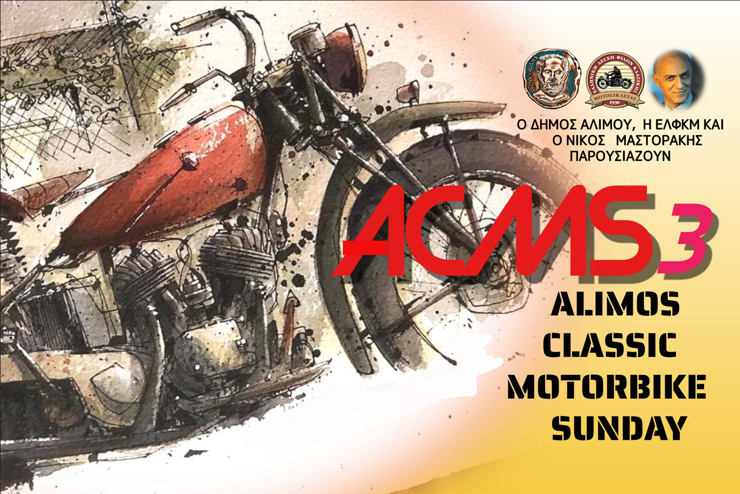 Το πρώτο ανοιξιάτικο υπερθέαμα κλασικών αυτοκινήτων και μοτοσικλετών του Αλίμου, ξεδιπλώνεται φέτος πάλι στον μαγευτικό παραλιακό του πεζόδρομο, και με φιλοδοξίες το τέταρτο Alimos Classic Car Sunday και το τρίτο Alimos Classic Motorbike Sunday να είναι μεγαλύτερα και καλύτερα από τις διοργανώσεις που, μέχρι πέρυσι, γίνονταν κάθε Σεπτέμβριο.