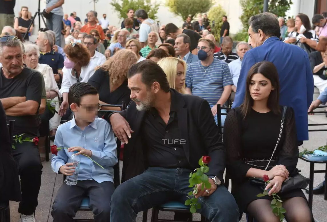 Από την τελετή αυτή δε θα μπορούσε να λείπει ο γιος του, Κωνσταντίνος Καζάκος ο οποίος εμφανίστηκε ντυμένος στα μαύρα συνοδευόμενος από την κόρη του Τζένη Καζάκου και τον μικρότερο γιο του Iασονα.
