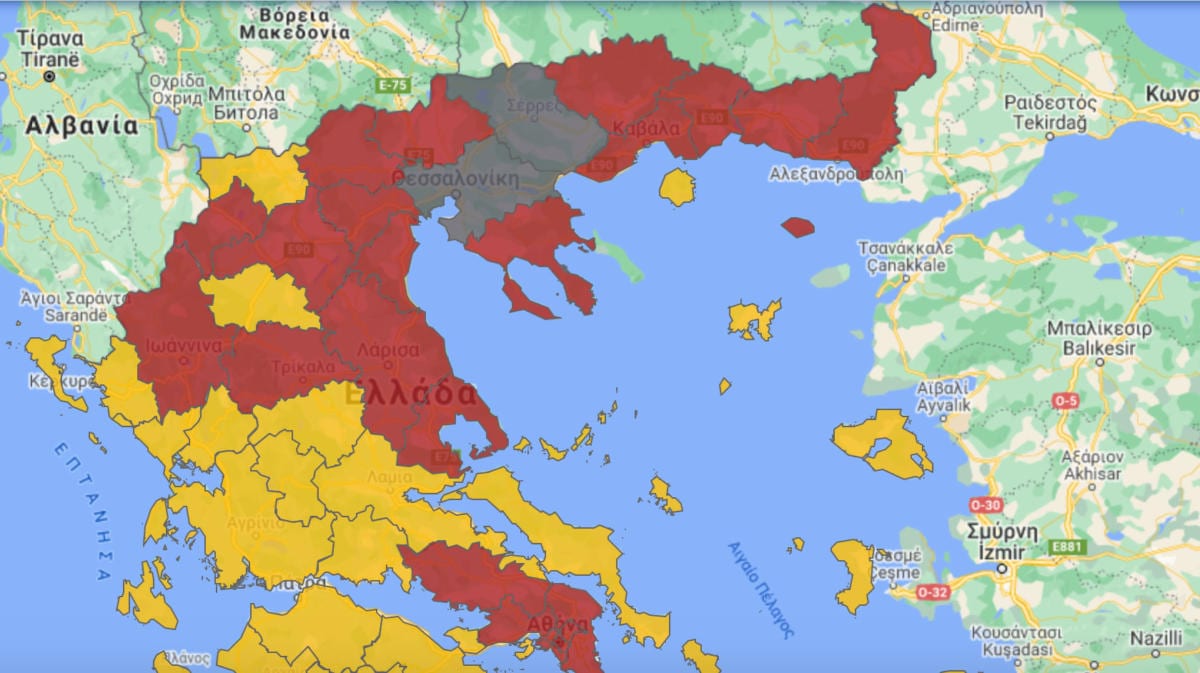 Στον υγειονομικό χάρτη που αποτυπώνει την εξάπλωση του κορονοϊού στη χώρα, η Θεσσαλονίκη και οι Σέρρες είναι πλέον… γκρί. Είναι οι δυο περιφερειακές ενότητες όπου ισχύει εδώ και λίγη ώρα καθολικό lockdown, όπου οι μετακινήσεις γίνονται με sms στο 13033, όπως την περασμένη άνοιξη, όλα είναι κλειστά, εκτός από τα σχολεία με εξαίρεση εδώ τα Λύκεια.