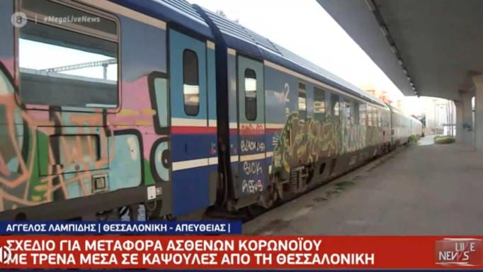 Αμαξοστοιχία της ΤΡΑΙΝΟΣΕ βρίσκεται έτοιμη στον σιδηροδρομικό σταθμό της Θεσσαλονίκης, σε περίπτωση που αποφασιστεί η μεταφορά ασθενών σε άλλες περιοχές της χώρας.