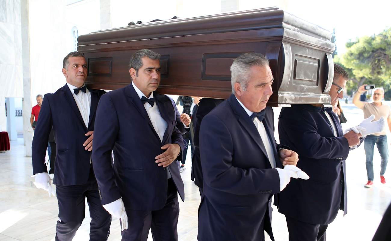 Λίγα λεπτά μετά τις 10 η σορός του έφτασε στο κοιμητήριο και οποιοσδήποτε θα μπορεί να τον αποχαιρετήσει με τον δικό του τρόπο και να αποτίσει φόρο τιμής στο Έλληνα μουσικοσυνθέτη. Ο κόσμος συρρέει σταδιακά στο σημείο για το τελευταίο αντίο.