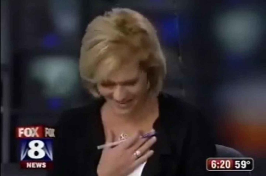 Αν και προσπαθούσε με νύχια και με δόντια να κρατήσει την ψυχραιμία της στον τηλεοπτικό αέρα, η παρουσιάστρια συνέχισε να γελάει νευρικά για αρκετή ώρα.