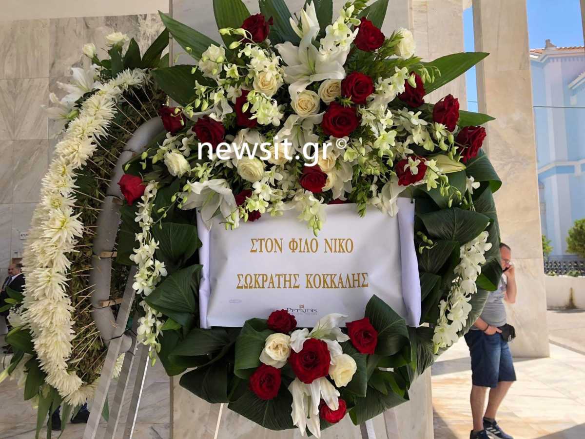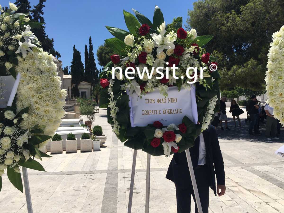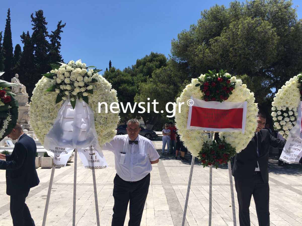Στεφάνια από την ΠΑΕ ΑΕΚ, την ΠΑΕ Ολυμπιακός, τον Σωκράτη Κόκκαλη και πολλούς ακόμη παράγοντες του αθλητισμού και της κοινωνίας, έχουν γεμίσει το χώρο, ενώ το φέρετρό του είχε πάνω τη σημαία της αγαπημένης του ομάδας, του Ολυμπιακού.