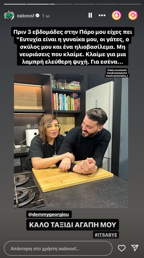 Ο δημοσιογράφος Ισίδωρος Φίκαρης, φίλος με την Ντέμη Γεωργίου, ήταν στο πλευρό της όλο αυτό το διάστημα. Ο ίδιος επέλεξε ένα πολύ συγκινητικό τρόπο για να την αποχαιρετήσει μέσα από τον λογαριασμό του στο Instagram.