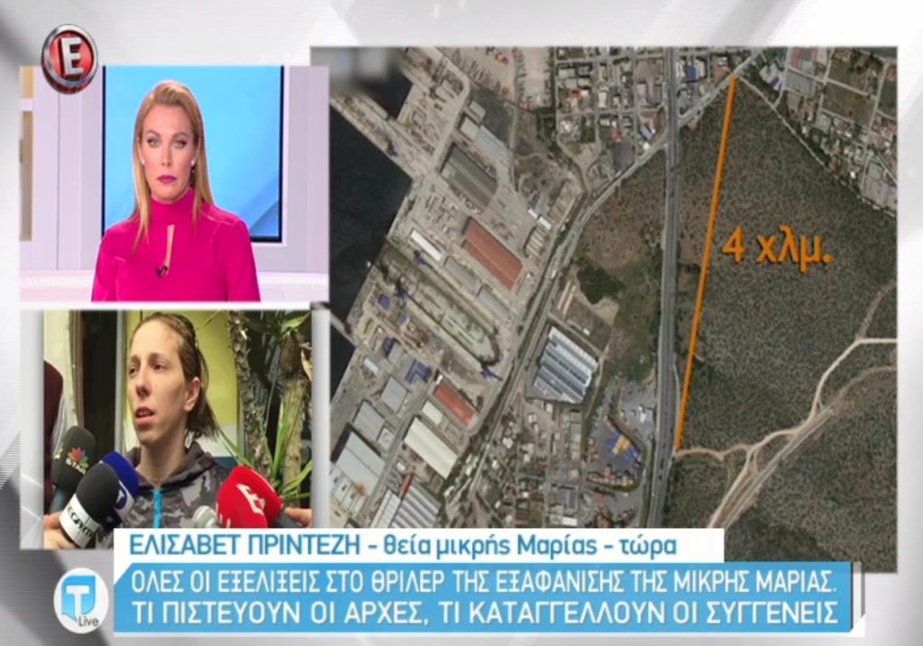 Τέσσερα χιλιόμετρα μακριά από το σημείο που εξαφανίστηκε , εντοπίστηκε μετά από 20 ώρες περίπου, η μόλις 3,5 ετών Μαρία, η περιπέτεια της οποίας έληξε με αίσιο τέλος. Η τετράχρονη Μαρία είχε εξαφανιστεί από το σπίτι του παππού της στη λεωφόρο Σχιστού λίγο μετά τις 15.00 της Κυριακής του Πάσχα. Τα ερωτηματικά της υπόθεσης είναι πολλά, τόσο για την απόσταση που βρέθηκε η μικρή, όσο και για το γεγονός ότι κατάφερε ελαφριά ντυμένη να περάσει τη νύχτα της στο παγωμένο δάσος. Η Ελισάβετ Πρίντεζη θεια της μικρής κατήγγειλε μιλώντας στο Tatiana Live πως δεν είχαν όση βοήθεια θα μπορούσαν από τις Αρχές, ενώ μίλησε για μεγάλη προσπάθεια από τους ίδιους και τους διασώστες στην περιοχή η οποία είναι δύσβατη.
