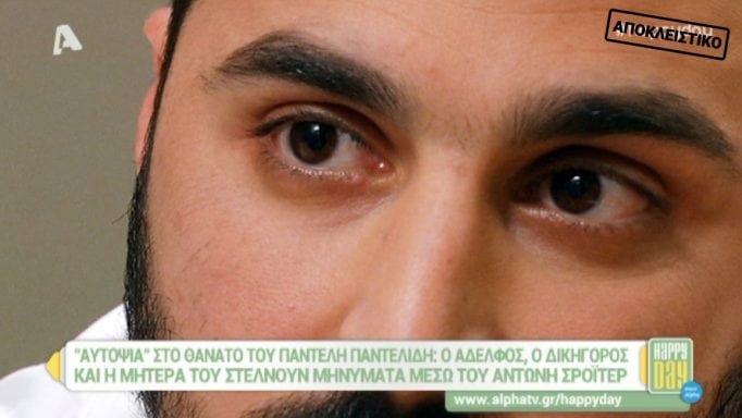 Ο Τριαντάφυλλος Παντελίδης, αδερφός του τραγουδιστή, λύνει τη σιωπή του και μιλά για πρώτη φορά μπροστά στην κάμερα. Ένα μέρος των όσων αποκαλύπτει θα προβληθεί στο αποψινό κεντρικό δελτίο ειδήσεων του Alpha, στις 19:00. Ολόκληρη η συνέντευξη θα μεταδοθεί στην Αυτοψία με τον Αντώνη Σρόιτερ, την Τρίτη 7 Φεβρουαρίου, στις 23:30.