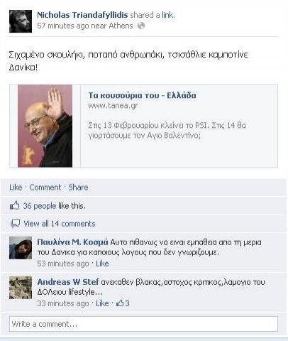 «Σιχαμένο σκουλήκι, ποταπό ανθρωπάκι, τρισάθλιε καμποτίνε Δανίκα!», έγραψε συγκεκριμένα.