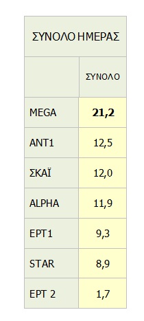 Δείτε αναλυτικά τις μετρήσεις τηλεθέασης...