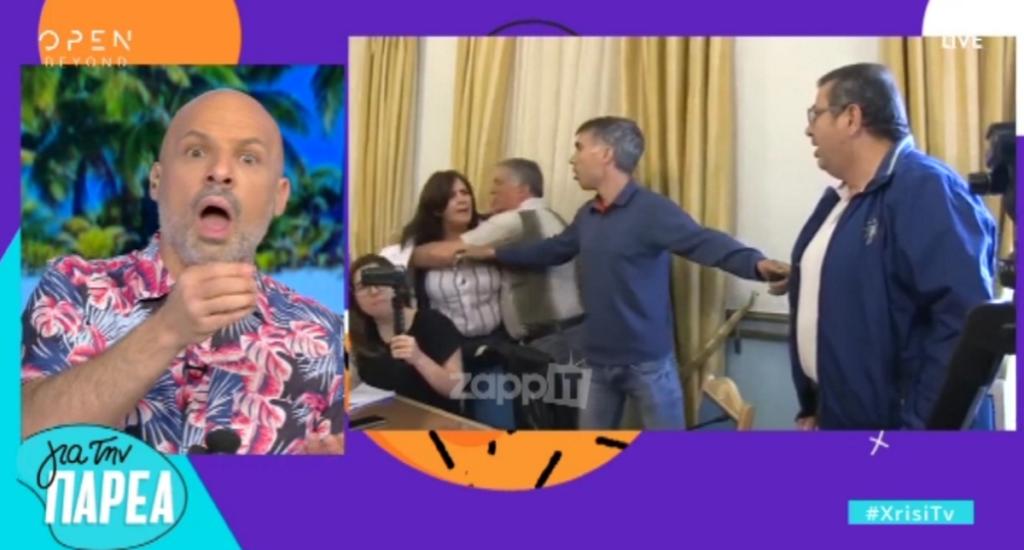 Ο κ. Μπελόγιαννης όχι μόνο αρνήθηκε να αποχωρήσει, αλλά στράφηκε και εναντίον της κας Νικολάκου με φραστικές και ανοίκειες επιθέσεις, επαναλαμβάνοντας μάλιστα τις ίδιες ύβρεις που καθημερινά εξαπολύει από το τηλεοπτικό του κανάλι, που δε συνάδουν καθόλου με το ρόλο της αντικειμενικής ενημέρωσης και εποικοδομητικής κριτικής».