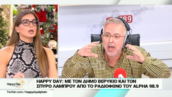 Εκτός ελέγχου βγήκε η συζήτηση στο Happy Day, η οποία πολύ σύντομα εξελίχθηκε σε τρικούβερτο καβγά με πρωτοφανή ένταση και ανταλλαγές απίθανων σχολίων μεταξύ των συνεργατών της εκπομπής. Από τη μία ο Δήμος Βερύκιος, από την άλλη η Τίνα Μεσσαροπούλου και ο Κώστας Φραγκολιάς, με τη Σταματίνα Τσιμτσιλή στη μέση να μην μπορεί να πιστέψει όλα αυτά που ακούγονταν στον αέρα.