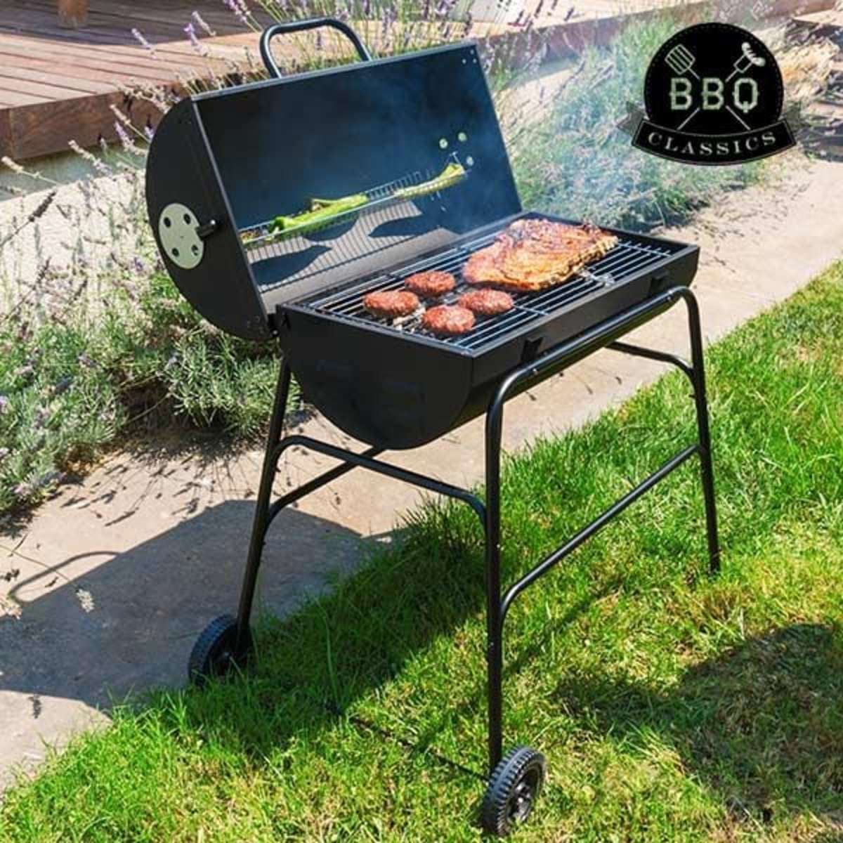 Το κυλινδρικό μπάρμπεκιου BBQ CLASSICS, λειτουργεί με κάρβουνο, σεβόμενο το περιβάλλον, έχει πλευρική λαβή και ρόδες για εύκολη μεταφορά, αλλά και σχάρα από ανοξείδωτο χάλυβα. Επιπλέον, η μεγάλη επιφάνεια ψησίματος, δίνει τη δυνατότητα να εξοικονομείτε χρόνο, βάζοντας πάνω πολλές λιχουδιές!