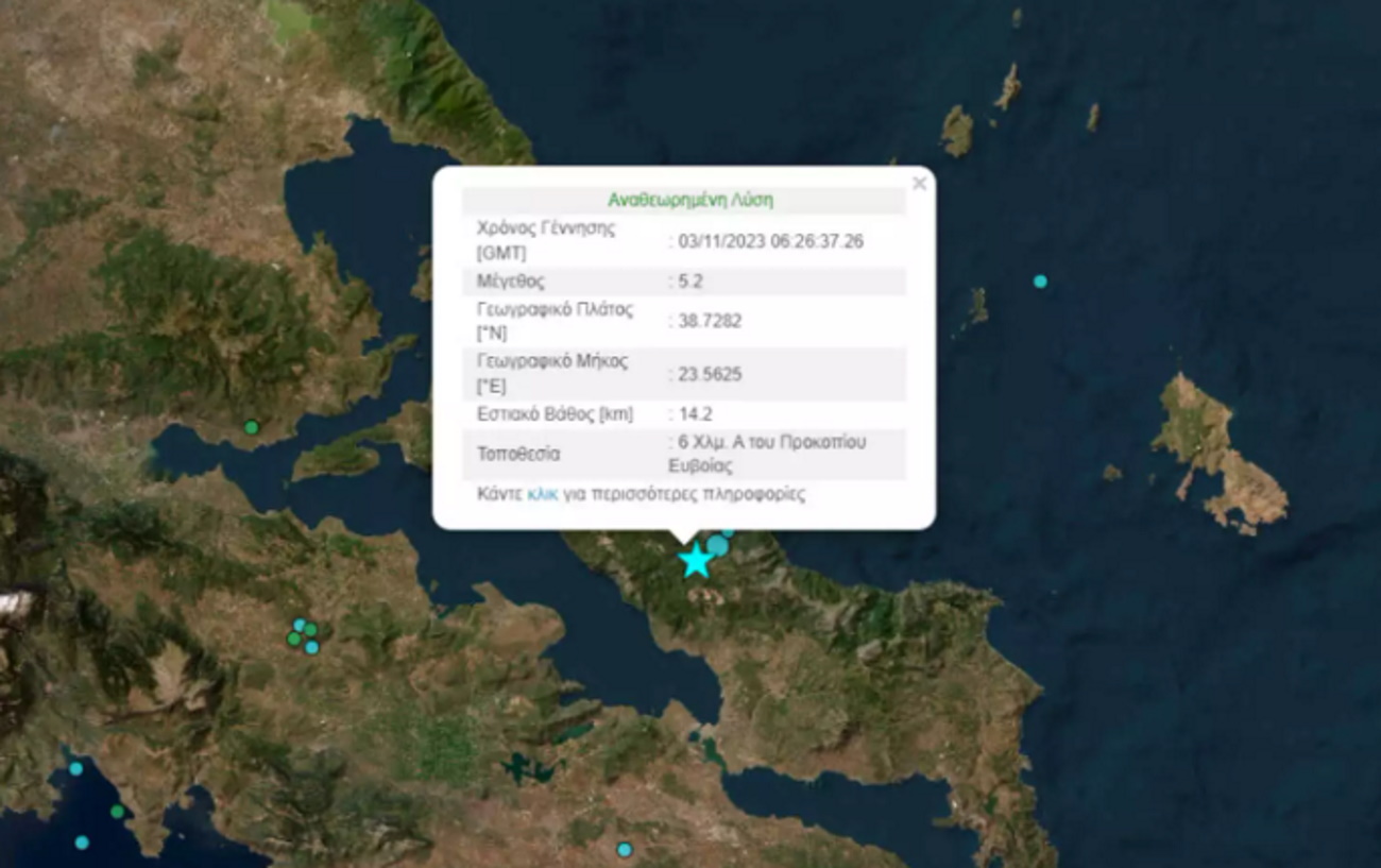 Σύμφωνα με το Γεωδυναμικό Ινστιτούτο ο σεισμός είχε ισχύ 5,2 Ρίχτερ, με επίκεντρο την Εύβοια, με την Αθήνα επίσης να «ταρακουνιέται» για τα καλά.