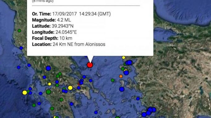 Σεισμός μεγέθους 4,2 βαθμών της κλίμακας Ρίχτερ σημειώθηκε το απόγευμα της Κυριακής (17.09.2017) ανοιχτά της Αλοννήσου…