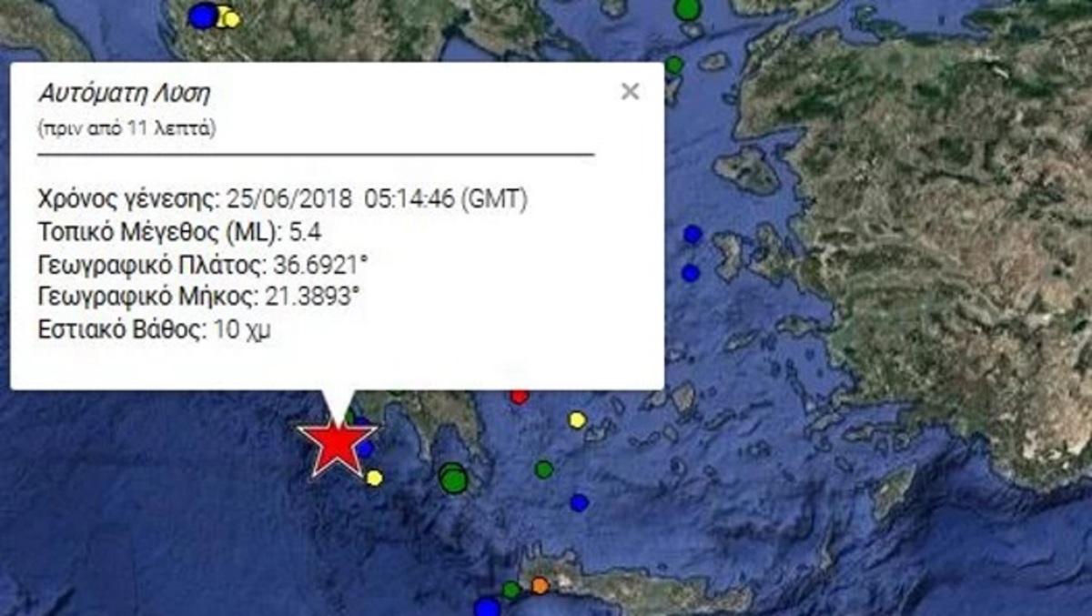 Ισχυρός σεισμός σημειώθηκε λίγο πριν από τις 08:30 το πρωί της Δευτέρας (25.06.2018) ανοιχτά της Πύλου. Ο σεισμός ήταν μεγέθους 5,3 βαθμών της κλίμακας Ρίχτερ.