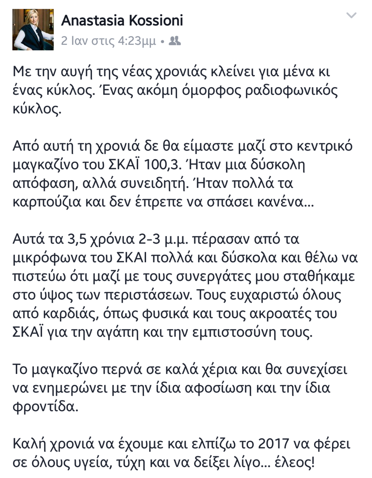 «Με την αυγή της νέας χρονιάς κλείνει για μένα κι ένας κύκλος. Ένας ακόμη όμορφος ραδιοφωνικός κύκλος.