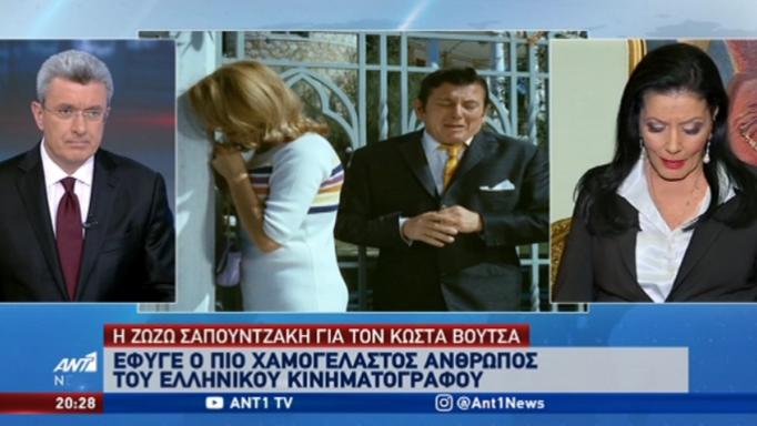 Στο κεντρικό δελτίο ειδήσεων του ΑΝΤ1 και τον Νίκο Χατζηνικολάου μίλησε η Ζωζώ Σαπουντζάκη για τον Κώστα Βουτσά. Η γνωστή ηθοποιός αναφέρθηκε στη γνωριμία τους στη Θεσσαλονίκη, στις θεατρικές και κινηματογραφικές τους συνεργασίες, ενώ συγκινημένη αποκάλυψε πως θα πήγαινε να τον δει στο νοσοκομείο, αλλά δεν πρόλαβε.