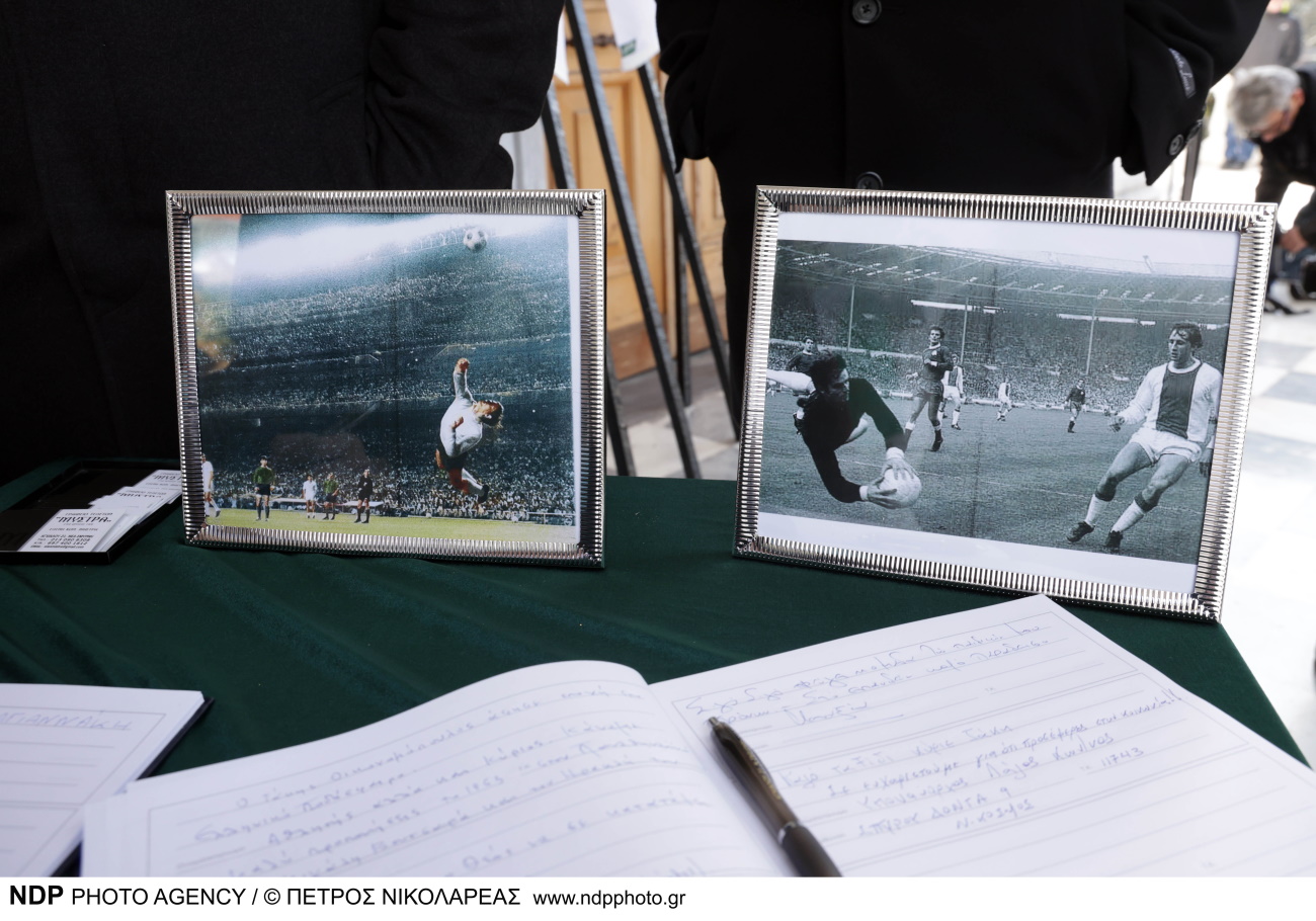 Εκατοντάδες επώνυμοι κι ανώνυμοι φίλοι του Παναθηναϊκού έδωσαν το “παρών” στο λαϊκό προσκύνημα που πραγματοποιήθηκε στις 10.00 στον Ι. Ν. Αγίου Δημητρίου στην Κηφισιά, για το ύστατο χαίρε στον μεγαλύτερο τερματοφύλακα όλων των εποχών στο ελληνικό ποδόσφαιρο.