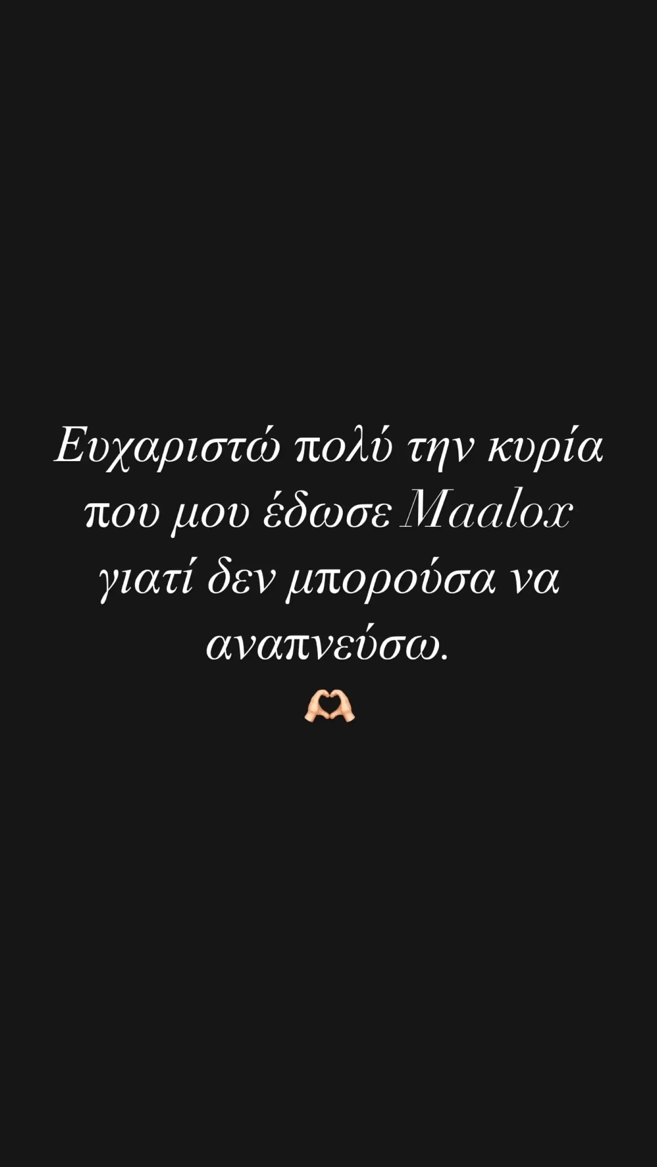 “Ευχαριστώ πολύ την κυρία που μου έδωσε Maalox γιατί δεν μπορούσα να αναπνεύσω”, σημειώνει σε επόμενη ανάρτησή του.