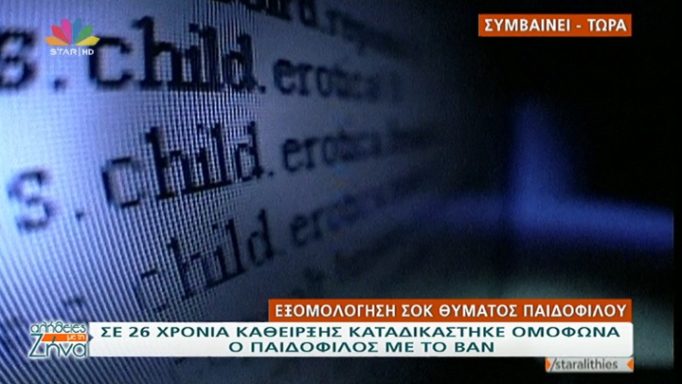 Στην εκπομπή «Αλήθειες με τη Ζήνα» μίλησε ένα από τα θύματα του παιδόφιλου με το βαν. Αναφέρθηκε στον τρόπο με τον οποίο τον προσέγγισε, τι έλεγαν μεταξύ τους, αλλά και για ποιον λόγο ξέκοψε μαζί του.
