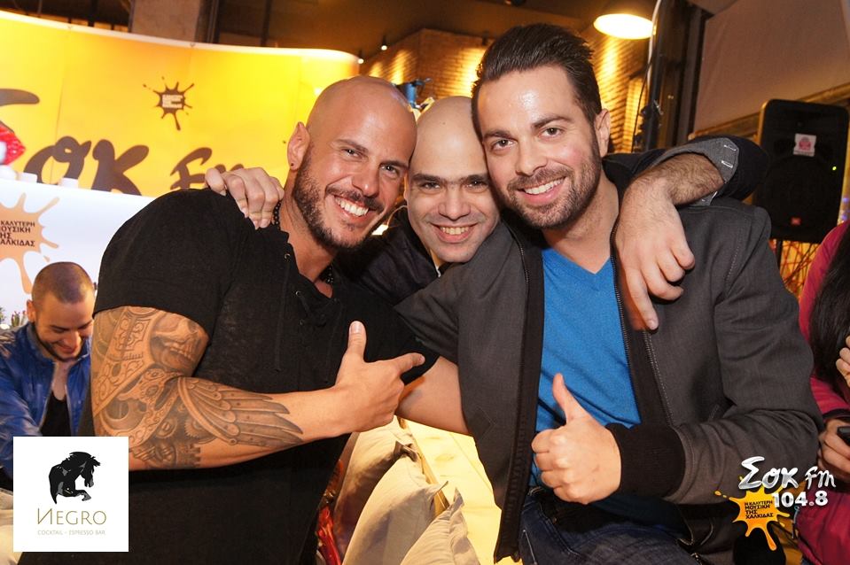 O Άρης Λουμάκης με τον ιδιοκτήτη του ΣΟΚ Fm, Νίκο Καρτελιά και τον Ηλία Βρεττό