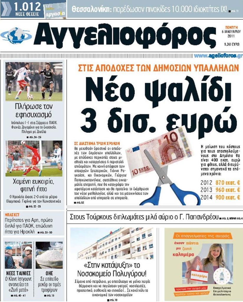 Η κοινή εταιρεία των ΔΟΛ- Πήγασου- Μπακατσέλου, που εκδίδει τον ”Αγγελιοφόρο” αφήνει το σχέδιο για τη σύναψη επιχειρησιακής σύμβασης με μειώσεις αποδοχών 10%-20% και επιδιώκει μονομερώς να επιβάλει την , εκ περιτροπής απασχόληση, βασιζόμενη στο ν. 3846/2010 του Α. Λοβέρδου, στα πρότυπα της “Καθημερινής”.