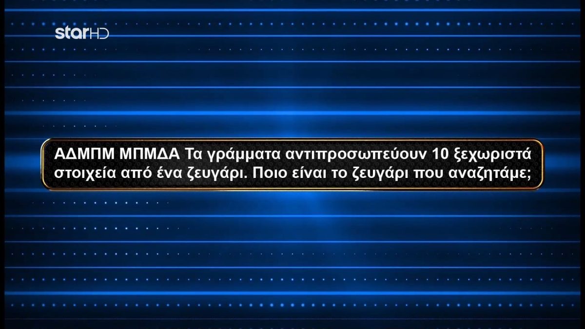 «ΑΔΜΠΜ ΜΠΜΔΑ: Τα γράμματα αντιπροσωπεύουν 10 ξεχωριστά στοιχεία από ένα ζευγάρι. Ποιο είναι το ζευγάρι που αναζητάμε;».