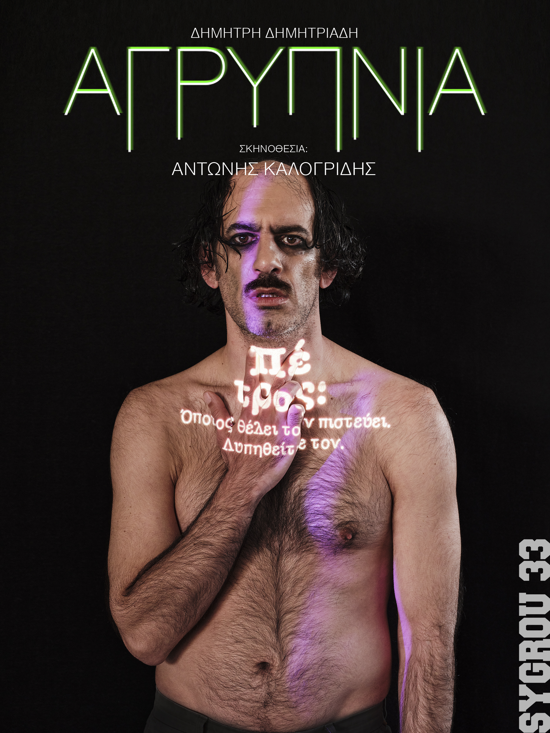 «Αγρυπνία» του Δημήτρη Δημητριάδη, σε σκηνοθεσία Αντώνη Καλογρίδη. Θέατρο «Συγγρού 33» – Πρεμιέρα τον Φεβρουαρίου του 2024