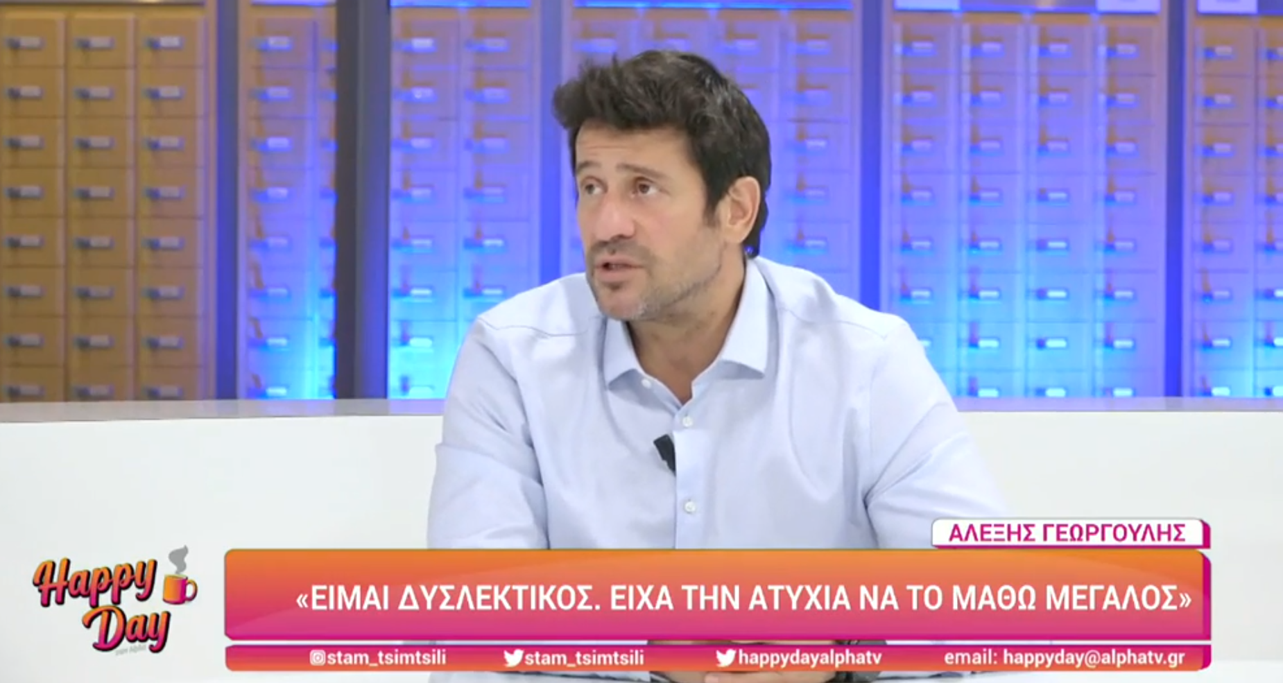 Ο Αλέξης Γεωργούλης παραχώρησε μία αποκλειστική συνέντευξη στο Happy Day και την Όλγα Λαφαζάνη, όπου αποκάλυψε μεταξύ άλλων το πρόβλημα της δυσλεξίας το οποίο αντιμετωπίζει.