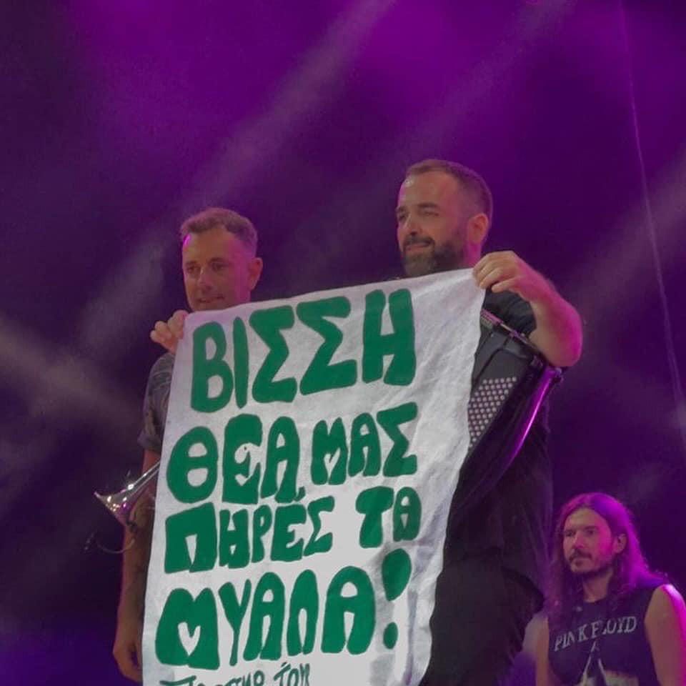 Στο πλευρό της είχε, όπως σε κάθε συναυλία, την πολυπληθή της μπάντα από το Hotel Ερμού και για πάνω από 2 ώρες έδωσε τον καλύτερό της εαυτό, τραγουδώντας για τους Κρητικούς που ξέσπαγαν σε χειροκροτήματα και επιδοκιμασίες, ενώ δεν έλειψαν και τα εύστοχα συνθήματα.