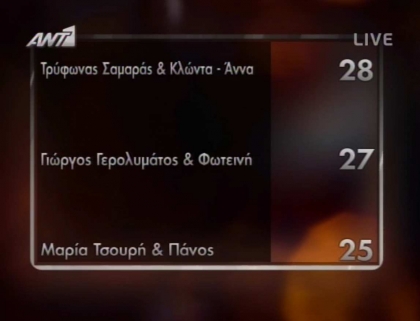 Η τελική βαθμολογία για τις χθεσινές εμφανίσεις των αστέρων έχει ως εξής: