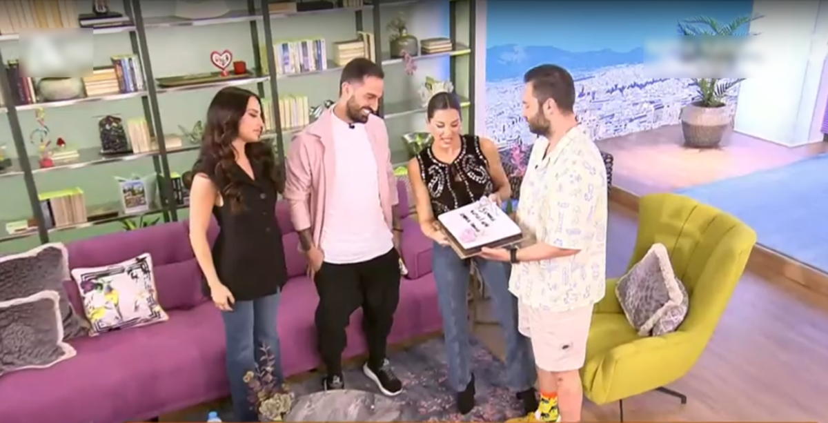 Στο τέλος της συνέντευξης, ο κουμπάρος του ζευγαριού, Κώστας Φραγκολιάς, μπήκε στο πλατώ με μία τούρτα για τα 5 χρόνια σχέσης του Άρη και της Μαρίας, με το ζευγάρι να αποκαλύπτει ότι πρόκειται να παντρευτεί την επόμενη άνοιξη.