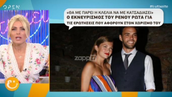 Ένταση επικράτησε στο πλατό της εκπομπής Ευτυχείτε με αφορμή τις δηλώσεις που έκανε ο Ρένος Ρώτας στις κάμερες και με την αντίδραση του όταν τον ρώτησε ο Κωνσταντίνος Ντάφλος για τον χωρισμό του από την Κλέλια Ανδριολάτου. Ο ηθοποιός ενοχλημένος έκανε παρατήρηση στον δημοσιογράφο για τις ερωτήσεις που του έκανε, «Ρε δεν ντρέπεσαι; Δεν ντρέπεσαι; Τώρα θα με πάρει η Κλέλια θα με κατσαδιάσει!».