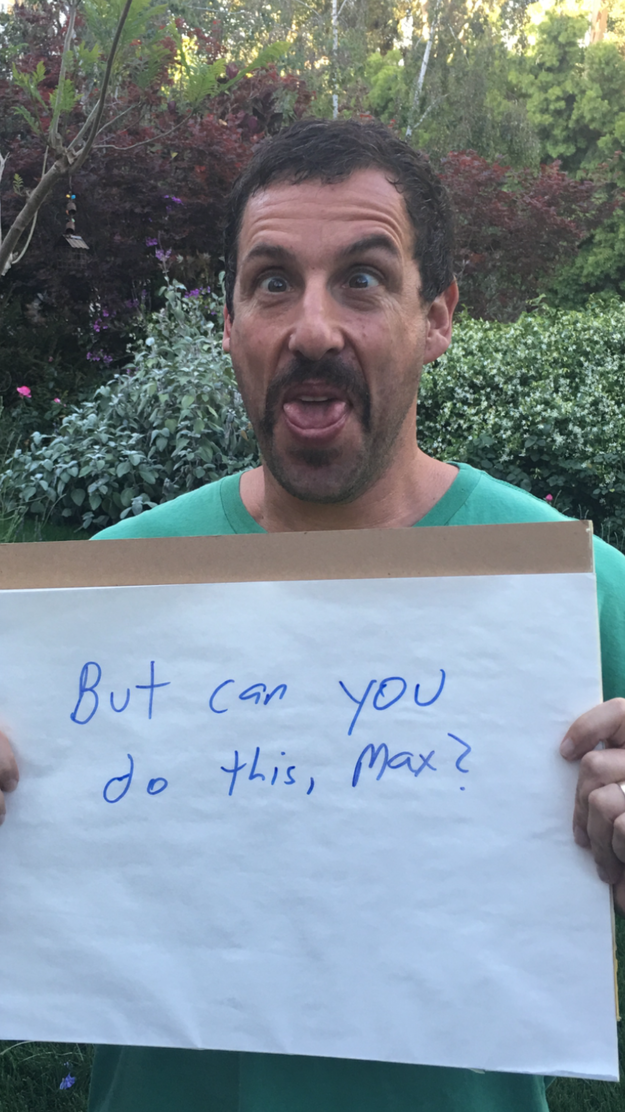 Σύντομα ο Adam Sandler του απάντησε με μία πρόκληση… «Εντάξει Μαξ, αλλά μπορείς να το κάνεις αυτό;»