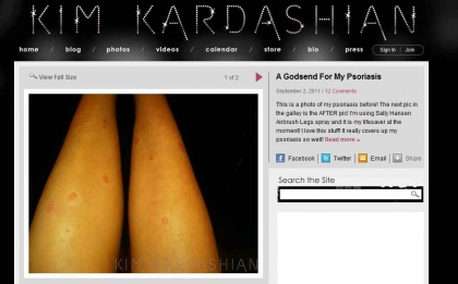 Συνέβη στην περίπτωση της Kim Kardashian. Η τηλεπερσόνα έχει ψωρίαση και ανακάλυψε στην αγορά, ένα σπρέι που τη βοηθά να κρύβει τα σημάδια στο σώμα της.