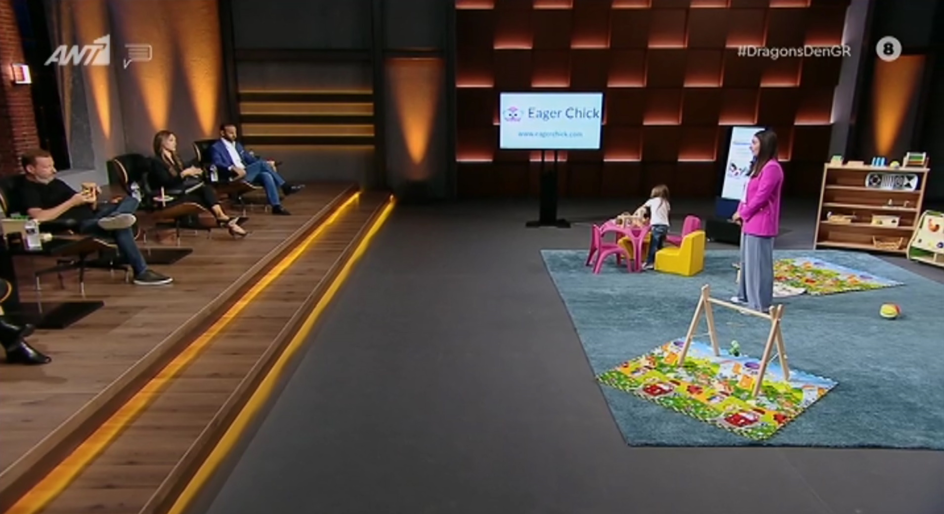 Για την ιστορία του Dragons’ Den, δε, η ιδιοκτήτρια του Eager Chick Early Learning έφυγε από το πλατό έχοντας συνάψει συμφωνία με την Μαρία Χατζηστεφανή.