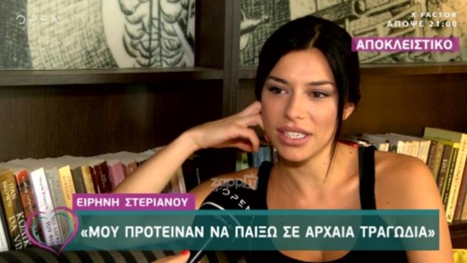 Στην εκπομπή “Ευτυχείτε” έδωσε συνέντευξη η Ειρήνη Στεριανού, η οποία μίλησε μεταξύ άλλων για τα επαγγελματικά της, αποκαλύπτοντας ότι της έγινε πρόταση να παίξει σε αρχαία τραγωδία.