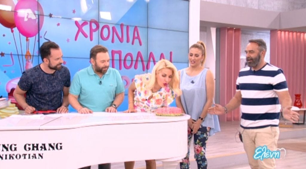 Τα γενέθλια της μικρής Μαρίνας γιόρτασε χωρίς τη μικρή Μαρίνα στο πλατό η Ελένη Μενεγάκη. Μελωδίες στο πιάνο, τραγούδια, χαμόγελα και μια ροζ τούρτα τριαντάφυλλο με δύο κεράκια… Η Ελένη Μενεγάκη δημιούργησε το ανάλογο σκηνικό, δέχτηκε ευχές και έσβησε η ίδια τα κεράκια για τα γενέθλια της κόρης της.
