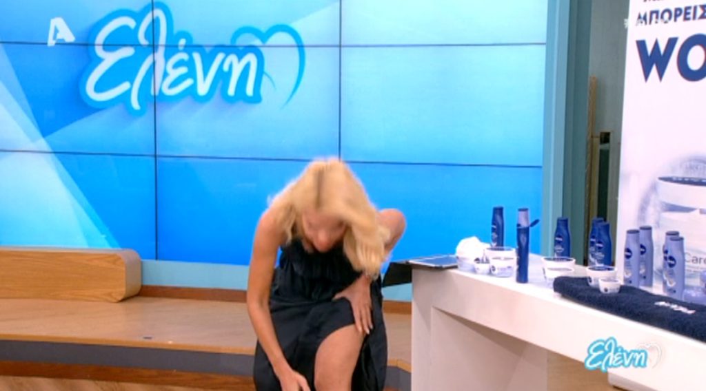 Ελένη Μενεγάκη: Σήκωσε το φόρεμα για να βάλει κρέμα και …τα είδαν όλα στο πλατό!