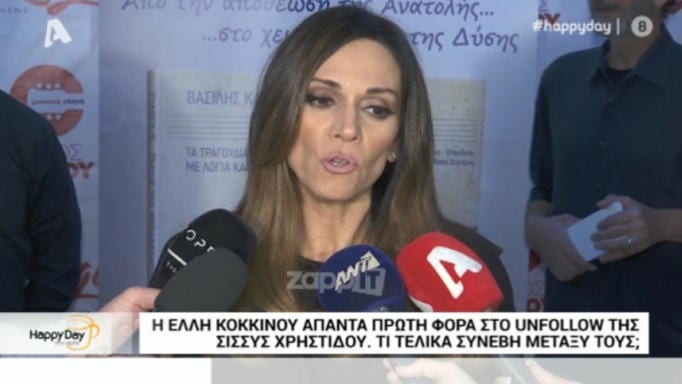 Η Έλλη Κοκκίνου, η Σίσσυ Χρηστιδου, ο Παύλος Σταματόπουλος και τα unfollow. Τι συμβαίνει τελικά ανάμεσά τους; Οι δημοσιογράφοι συνάντησαν την Έλλη Κοκκίνου στην παρουσίαση του νέου βιβλίου του Βασίλη Καρρά και δεν θα μπορούσαν να μη την ρωτήσουν…