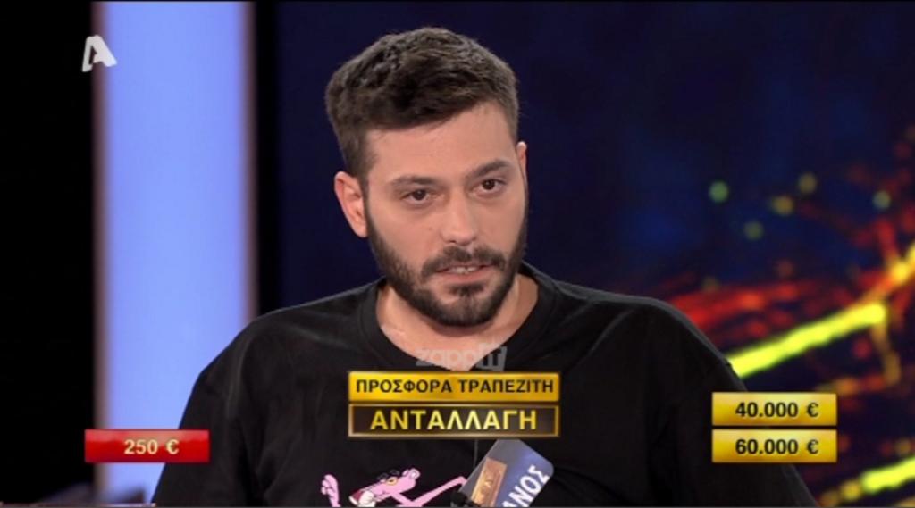 Ο Θάνος, λοιπόν, έμεινε με 250 ευρώ και 60.000 ευρώ. Ο τραπεζίτης του πρόσφερε 28.000 και ο παίκτης αποφάσισε να σταματήσει εκεί και να πάρει τα συγκεκριμένα χρήματα.