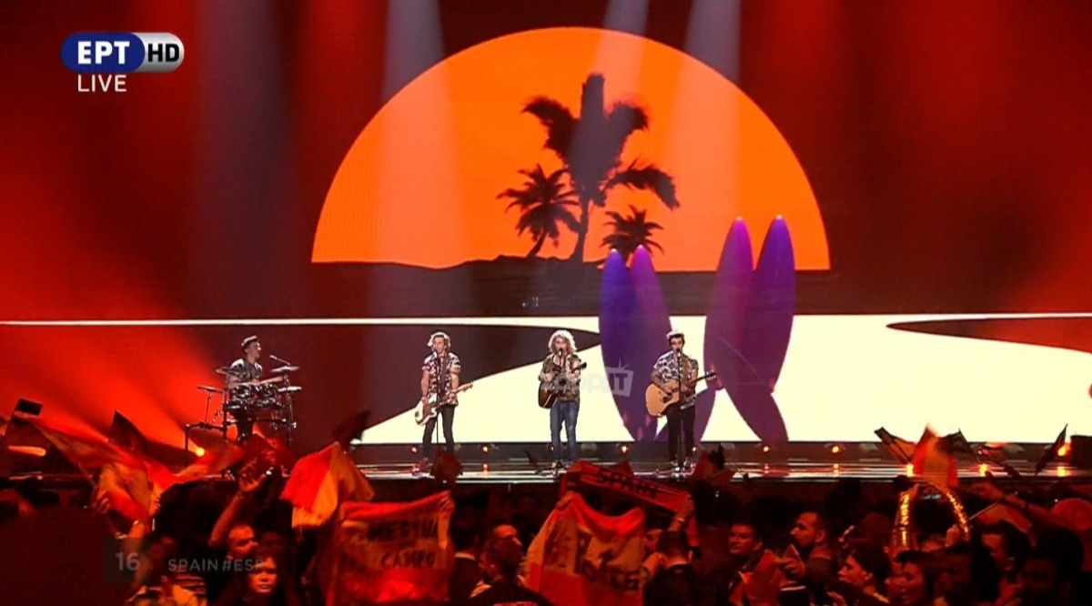 22:12 Το διαγωνιστικό μέρος της βραδιάς ανοίγει με το Ισραήλ. Ο IMRI που ζει για να γυμνάζεται ξεσηκώνει το κοινό με το I Feel Alive.