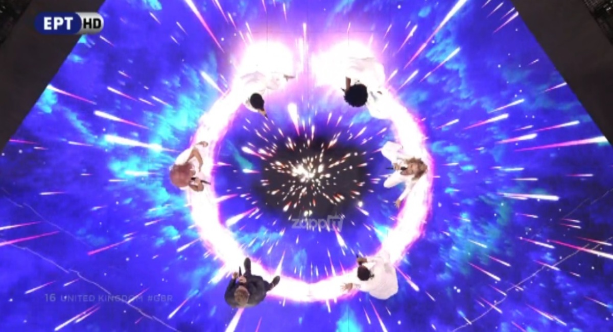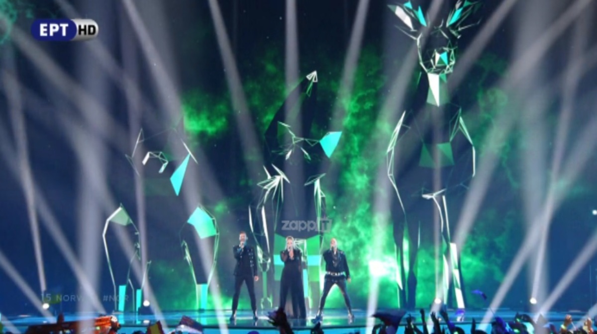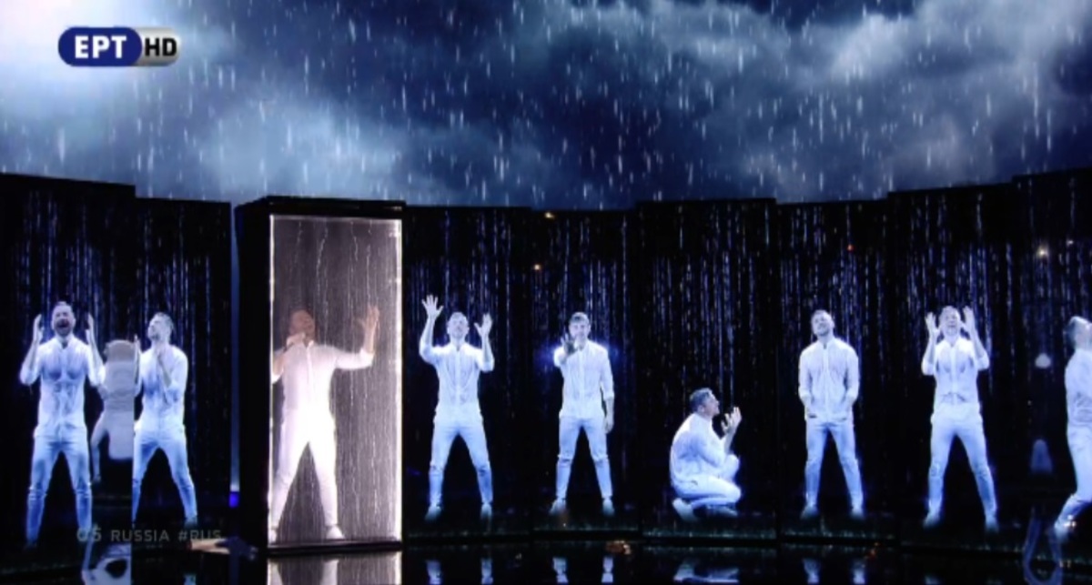 22:32 Το πρώτο ελληνικό στοιχείο της βραδιάς έρχεται από τη Ρωσία. Ο Sergey Lazarev τραγουδά το Scream του Δημήτρη Κοντόπουλου και πραγματοποιεί μια εκπληκτική εμφάνιση, την οποία επιμελήθηκε ο Φωκάς Ευαγγελινός.